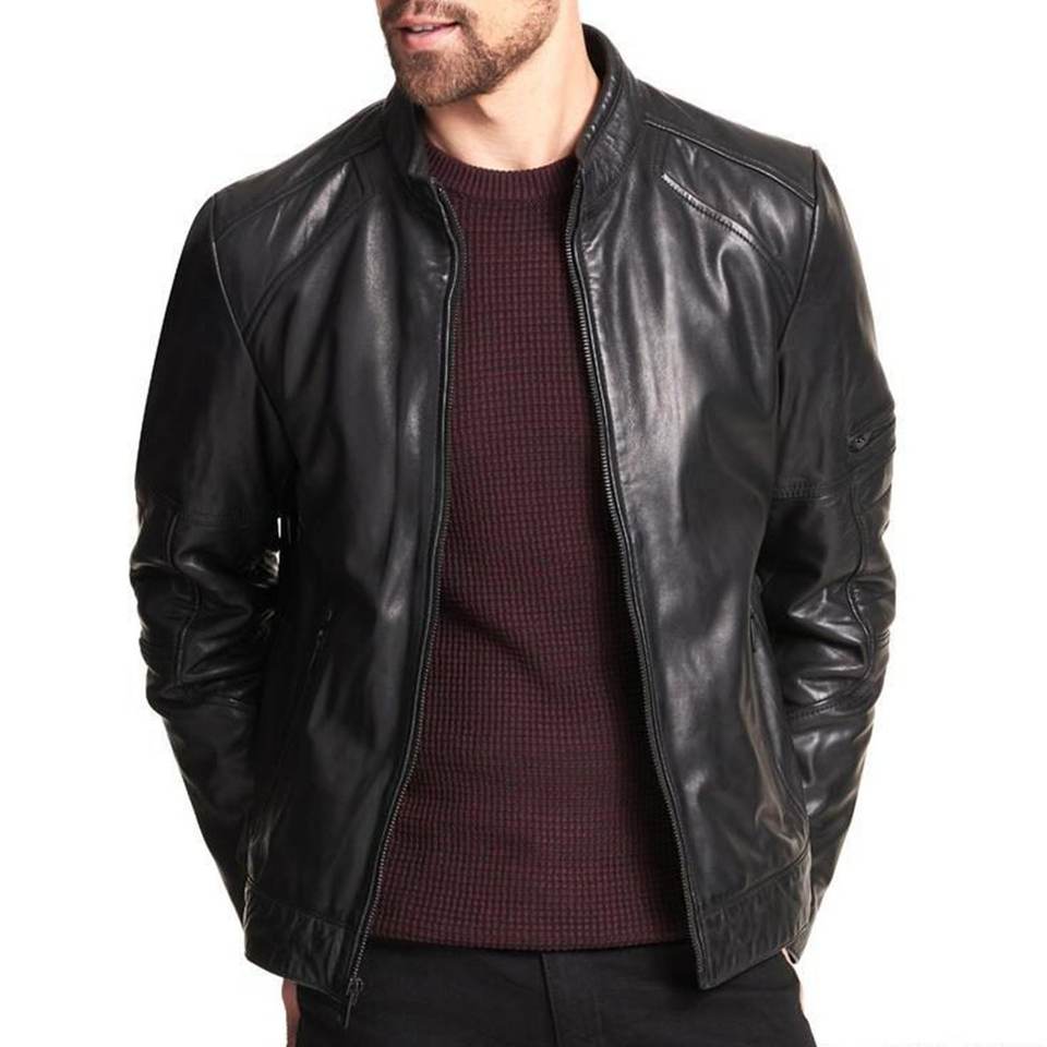 แจ็คเก็ตหนังสีดำพิมพ์โลโก้ตามสั่งสำหรับผู้ชาย สไตล์วินเทจ แจ็คเก็ตสตรีทแวร์คุณภาพสูง แจ็คเก็ตกันลมสำหรับฤดูหนาว ยอดขายสูง