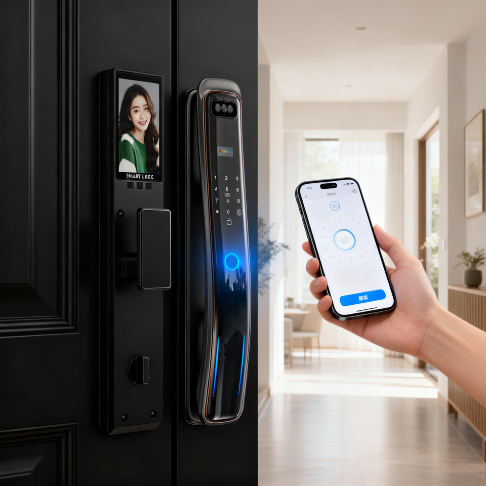 แอปควบคุม, การจดจำใบหน้า, รหัสผ่าน, กุญแจ, บัตร, ลายนิ้วมือวิธีปลดล็อค