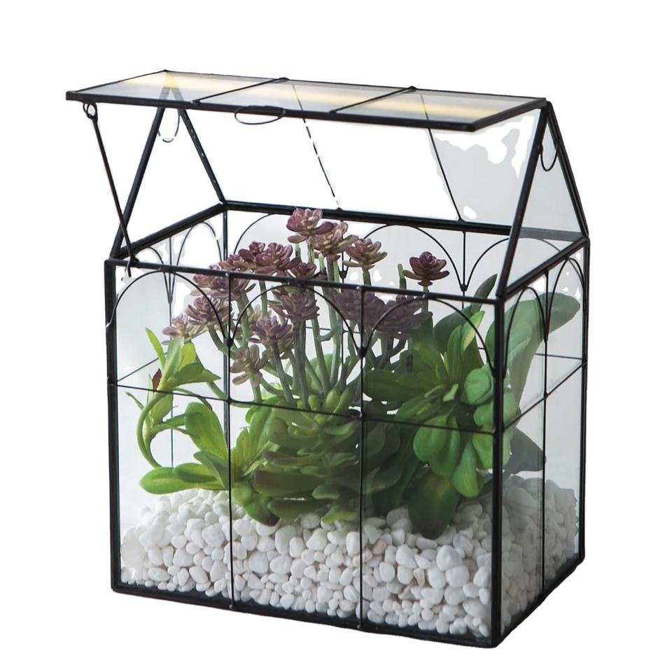 บ้านสีเขียวขนาดเล็กโลหะทองเหลืองสำหรับใช้ในสวนและกลางแจ้งหรือสวนขวดโลหะสำหรับพืชหรือของตกแต่ง