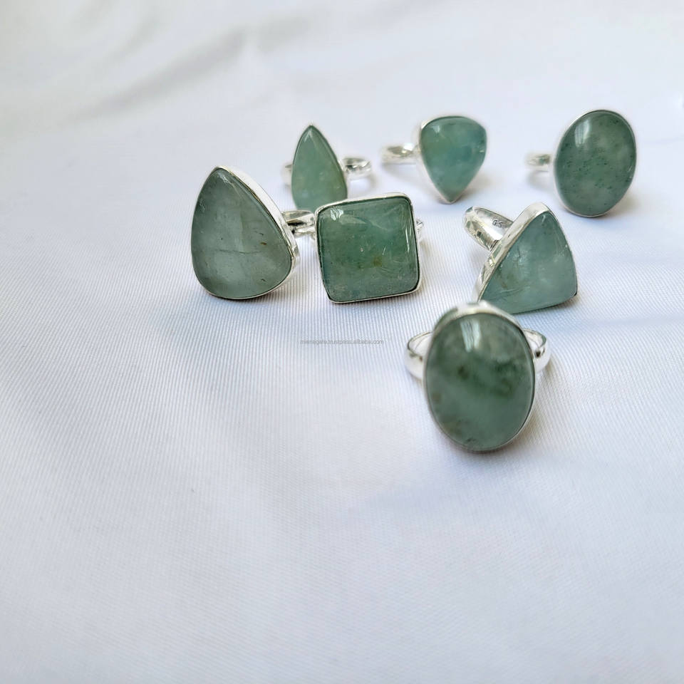 ขายดีมากทำด้วยมือแหวนพลอยอะความารีนเครื่องประดับแฟชั่นแหวนคริสตัลเงินเยอรมันแท้รูปร่างผสมขายส่ง