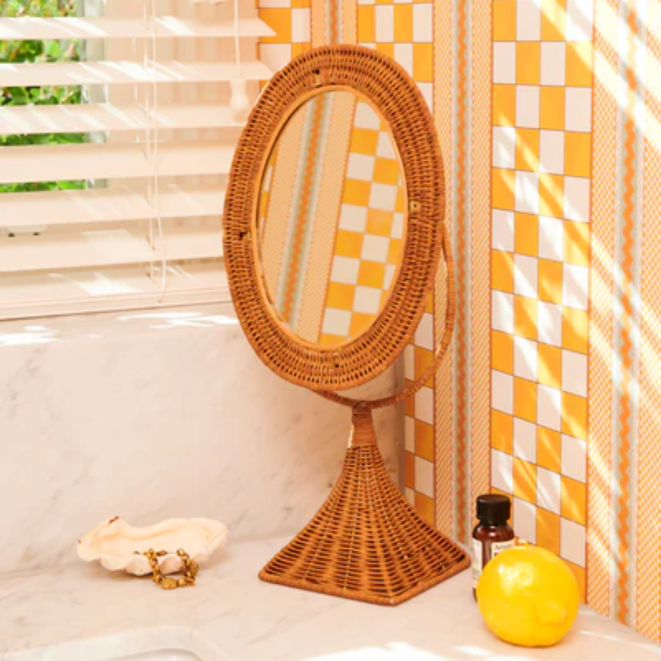 ชื่อผลิตภัณฑ์:กระจกเงาโต๊ะทำจากหวายสำหรับร้านเสริมสวย