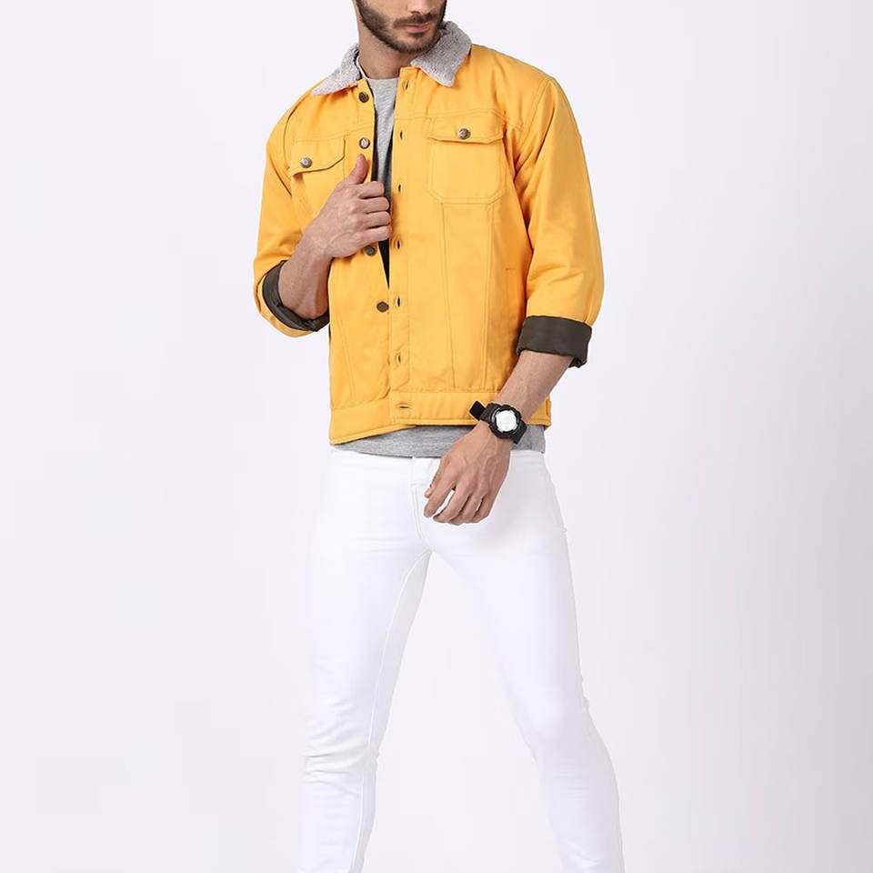 แจ็กเก็ตยีนส์สีพื้นสำหรับผู้ชายแจ็กเก็ตยีนส์สำหรับฤดูหนาวทำจากโรงงาน
