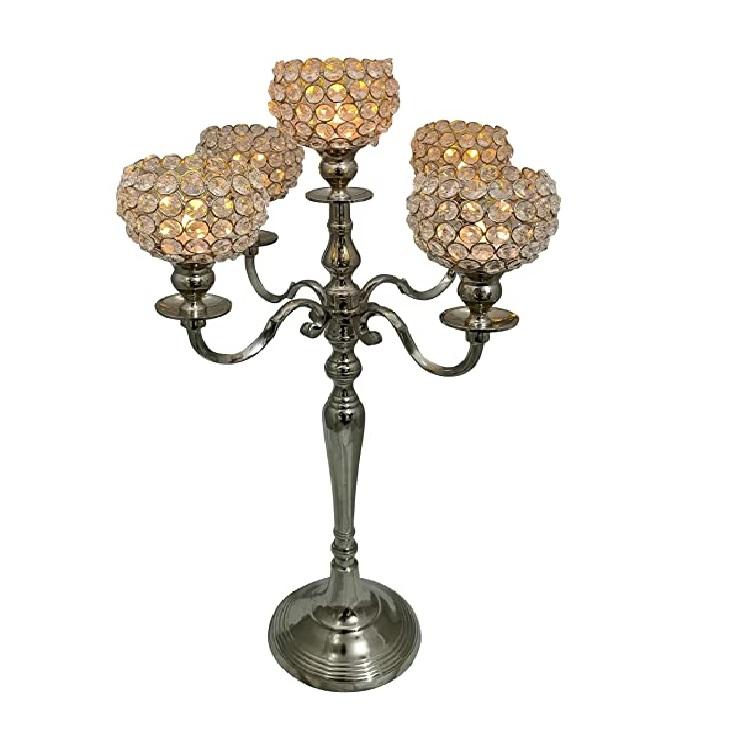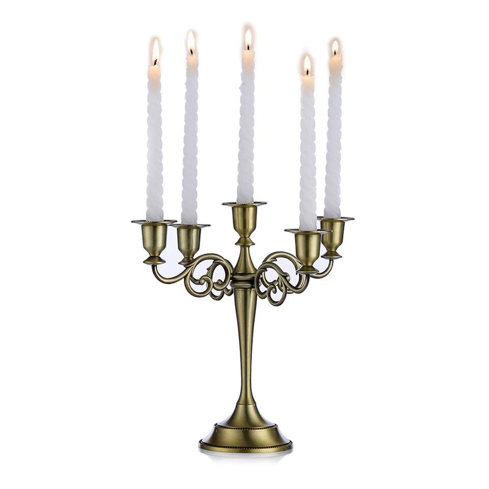 ขายสูงทําด้วยมือตกแต่งสีทองห้าแขนเทียนสําหรับเทียนแสงอาหารค่ําเทียนสําหรับราคาขายส่ง