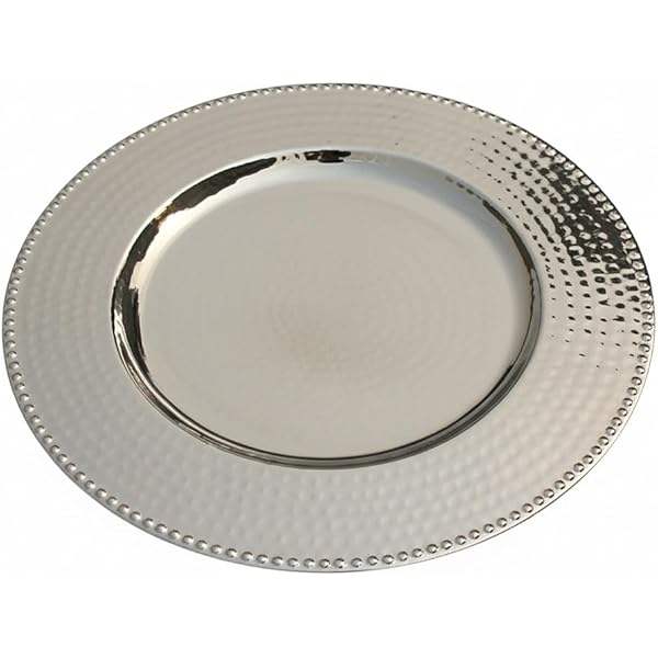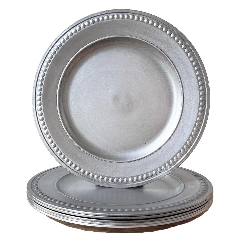 จานรองอาหารทรงกลมขายดี ขอบประดับลูกปัดสีเงิน สำหรับใช้ในบ้านและงานแต่งงาน