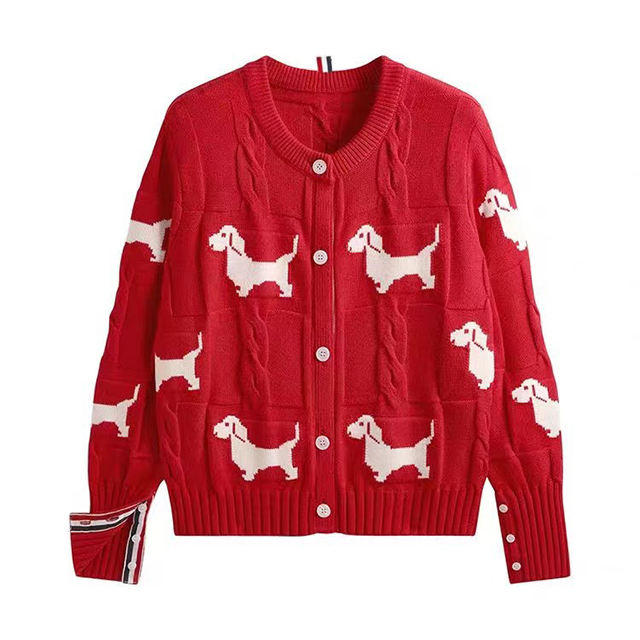 เสื้อสเวตเตอร์คนท้องแบบมีสไตล์ สามารถปรับแต่งสีได้ ลายลูกสุนัข สไตล์นักศึกษา ถักด้วยเส้นด้ายหนา คอกลม เสื้อคาร์ดิแกนสำหรับผู้หญิง