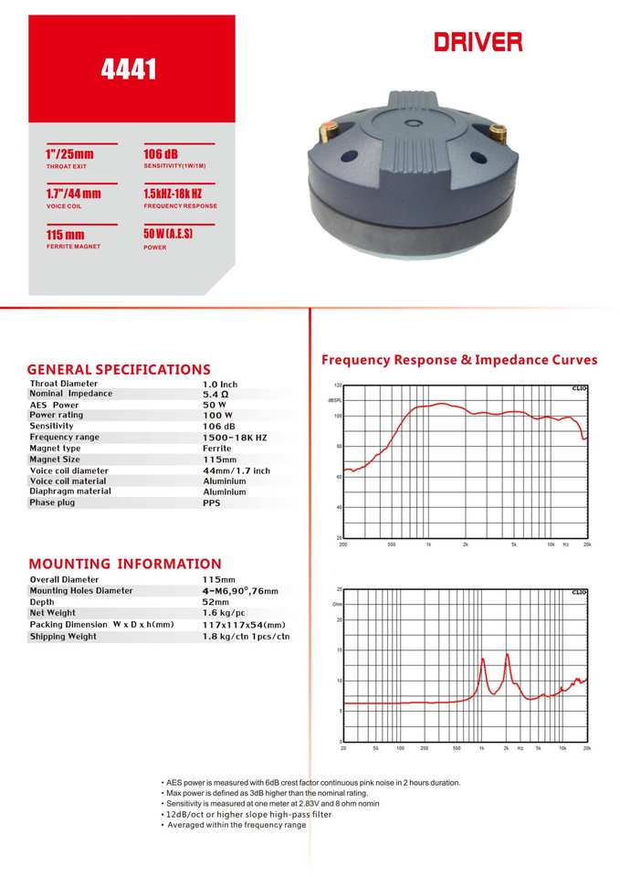 ลำโพงคอมเพรสชั่นไดรเวอร์ความไวสูง ขนาด 115 มม. วอยซ์คอยล์เฟอร์ไรต์ 1.7 นิ้ว ทรอท 1 นิ้ว สำหรับดีเจ บาร์ คลับ และการแสดง