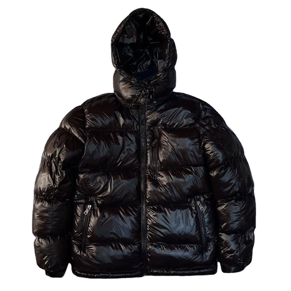 เสื้อแจ็คเก็ตพัฟเฟอร์ผู้ชายแบบมันเงา กันน้ำ สำหรับฤดูหนาว พร้อมฮู้ดถอดได้ ปักโลโก้ได้ บุด้วยใยขนเป็ดหนา