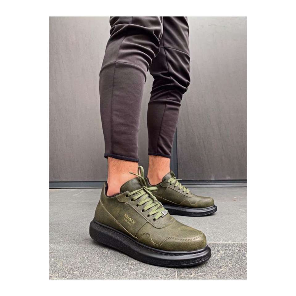 รองเท้าเดินสไตล์ลำลองพื้นรองเท้าสูง040สีกากีพื้นรองเท้าสีดำ