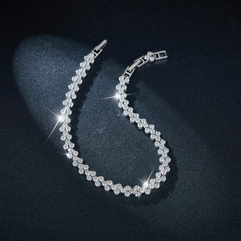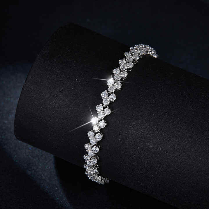 สร้อยข้อมือเพชรมอยส์ซอไนต์กลมแวววาวสำหรับสตรีสร้อยข้อมือเพชรสเตอริง925เป็นเอกลักษณ์ของขวัญสำหรับเธอ