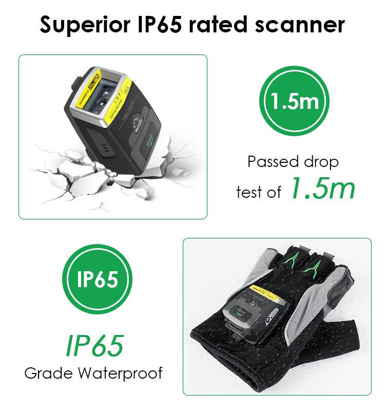 Glove 1d 2d wearable wireless industrial grade IP65 barcode scanners