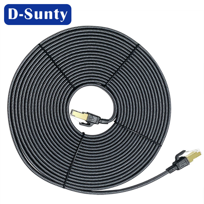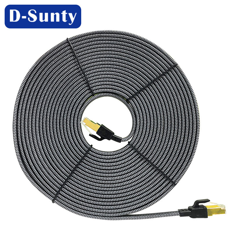 สายอีเธอร์เน็ต Cat8 ความเร็วสูง แบบถักด้วยไนลอนและผ้าฝ้าย Cat 8 SSTP 30AWG แบบแบน RJ45 ทองแดงเปลือย 4 คู่