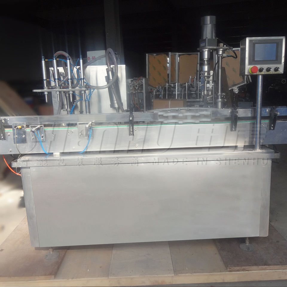 เครื่องปิดตาขวดแก้วขนาดเล็กเครื่องปิดฝาขวดหยดน้ำมันหอมระเหยอัตโนมัติเต็มรูปแบบความเร็วสูง
