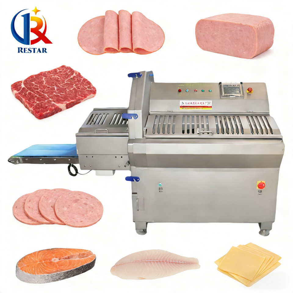 เครื่องตัดเนื้อหมูแบบเกล็ดความเร็วสูง เครื่องตัดไส้กรอกแช่แข็ง เครื่องตัดเนื้อหมูสำหรับทำอาหารกลางวัน เครื่องตัดไส้กรอกชีส เครื่องหั่นสับและหั่นเป็นชิ้น