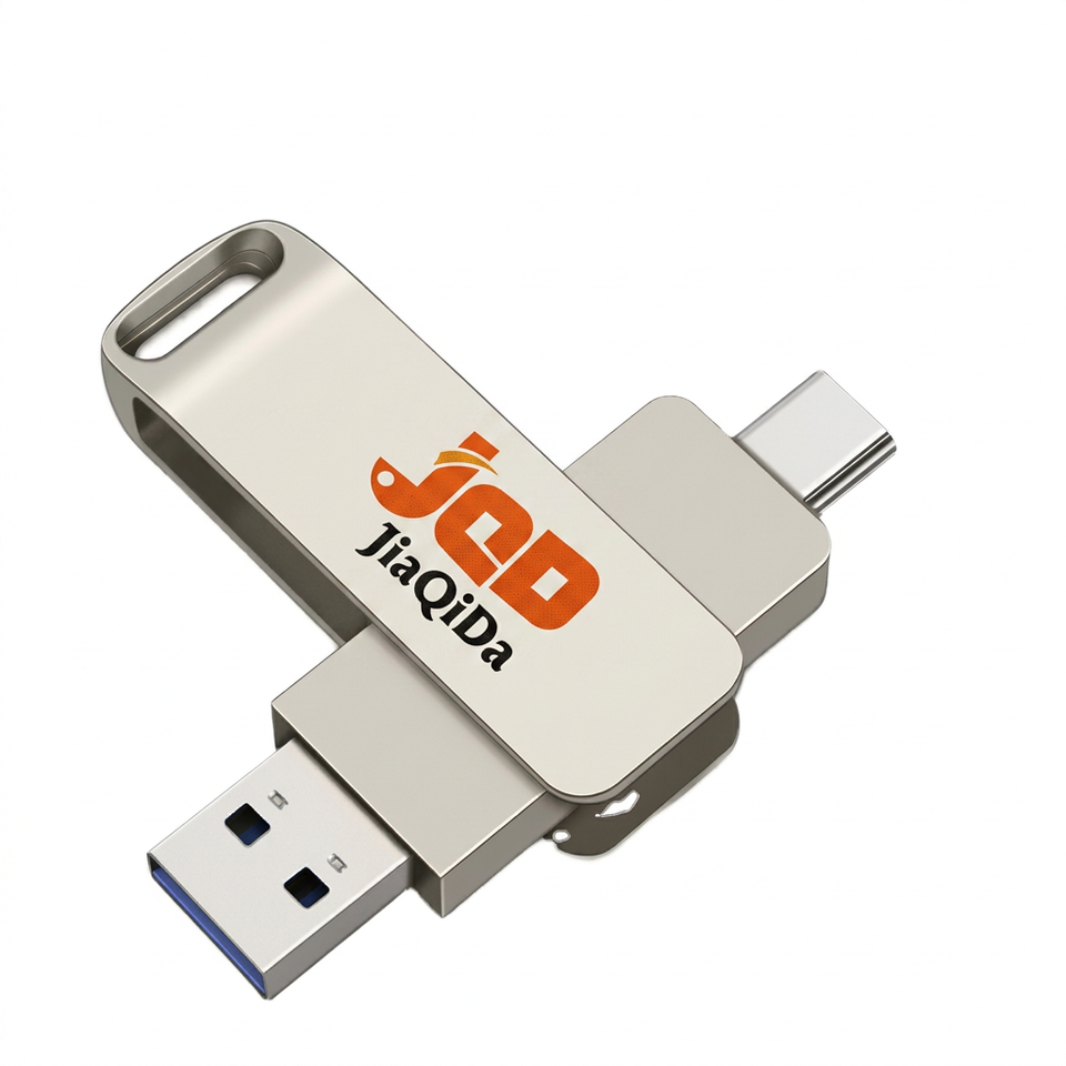 ชื่อผลิตภัณฑ์:แฟลชไดรฟ์ USB 3.0/2.0 แบบหมุนได้ 2-in-1 Type-C USB-A/OTG โลหะ