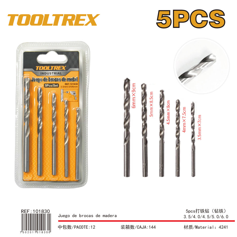 ชุดดอกสว่านทวิสท์ทูลเทร็กซ์ 5 ชิ้น ขนาด 3.5 4.0 4.5 5.0 6.0 มม. เคลือบสารพิเศษสำหรับเจาะงานก่ออิฐ