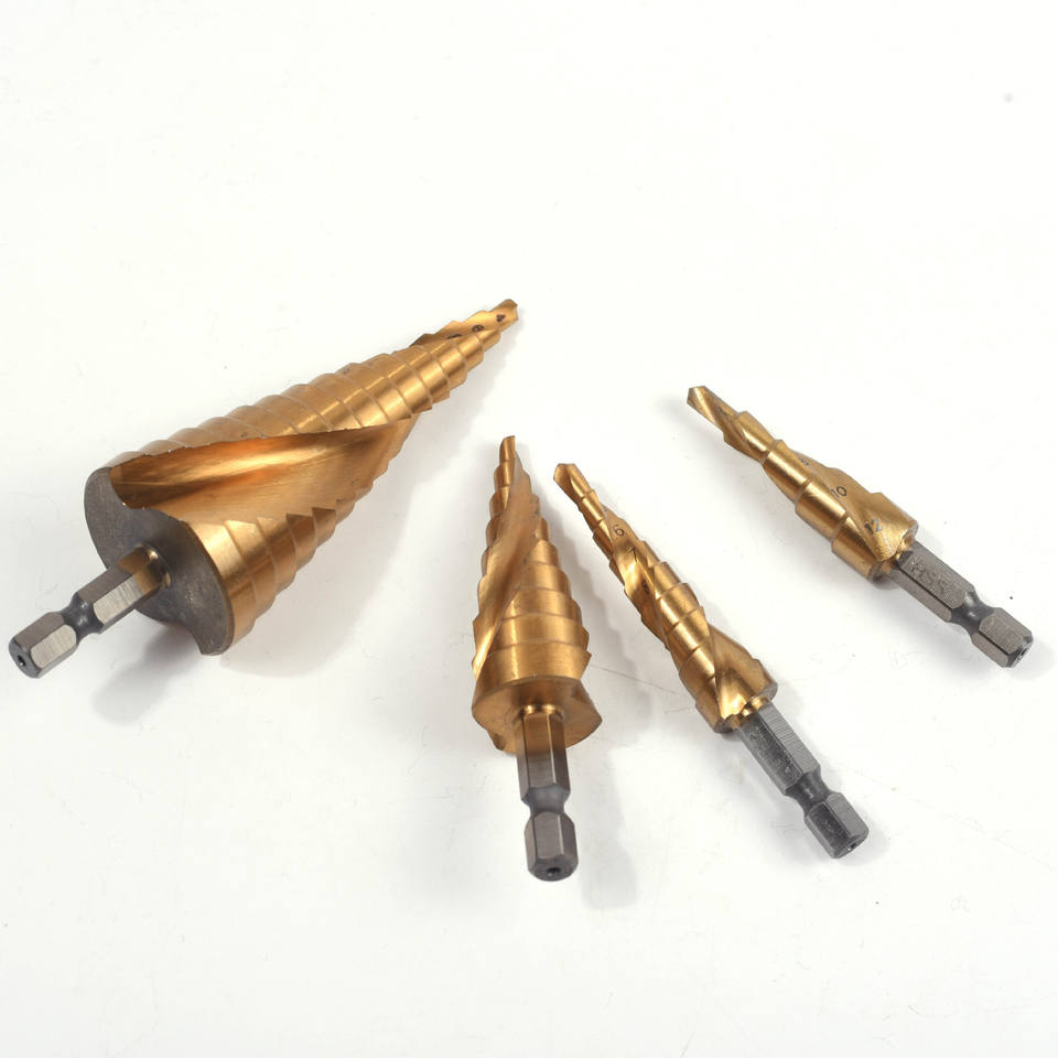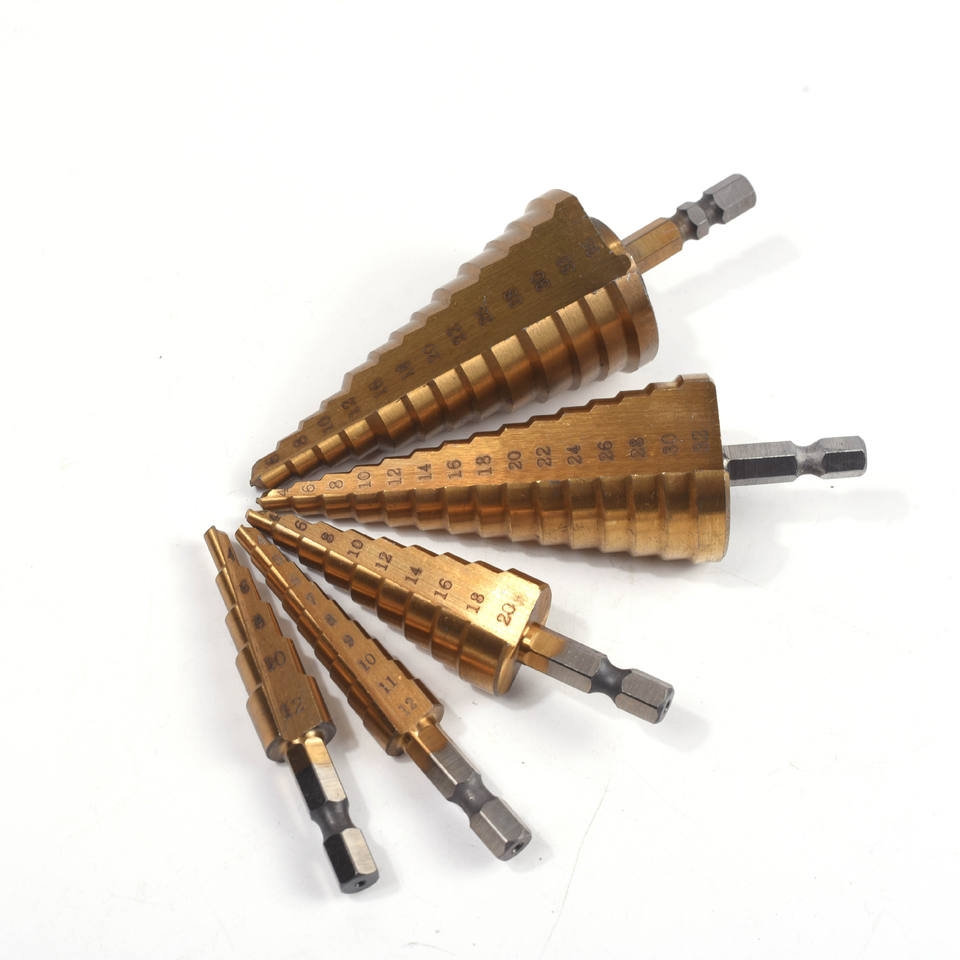 ดอกสว่านเหล็กความเร็วสูง หัวหกเหลี่ยม รุ่น M35 ชุบไทเทเนียม แบบร่องตรงและร่องเกลียว ดอกสว่านแบบขั้นบันได อเนกประสงค์
