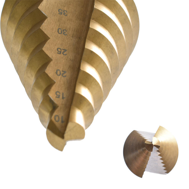 ดอกสว่านเจาะรูแบบขั้นบันไดเคลือบไทเทเนียมความเร็วสูง 10-45 มม. แบบสามเหลี่ยมทรงเจดีย์ สำหรับสว่านไฟฟ้าเจาะรูแบบบาง
