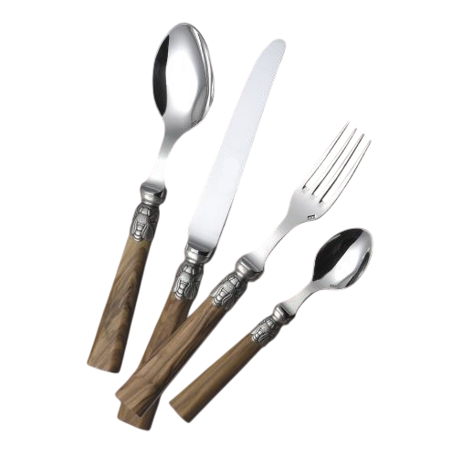 ชุดช้อนส้อมสแตนเลสคุณภาพสูง ชุบทองหรูหรา ด้ามจับขัดเงาลายไม้เทียม ดีไซน์ทันสมัย สวยงาม เหมาะสำหรับใช้ในบ้าน