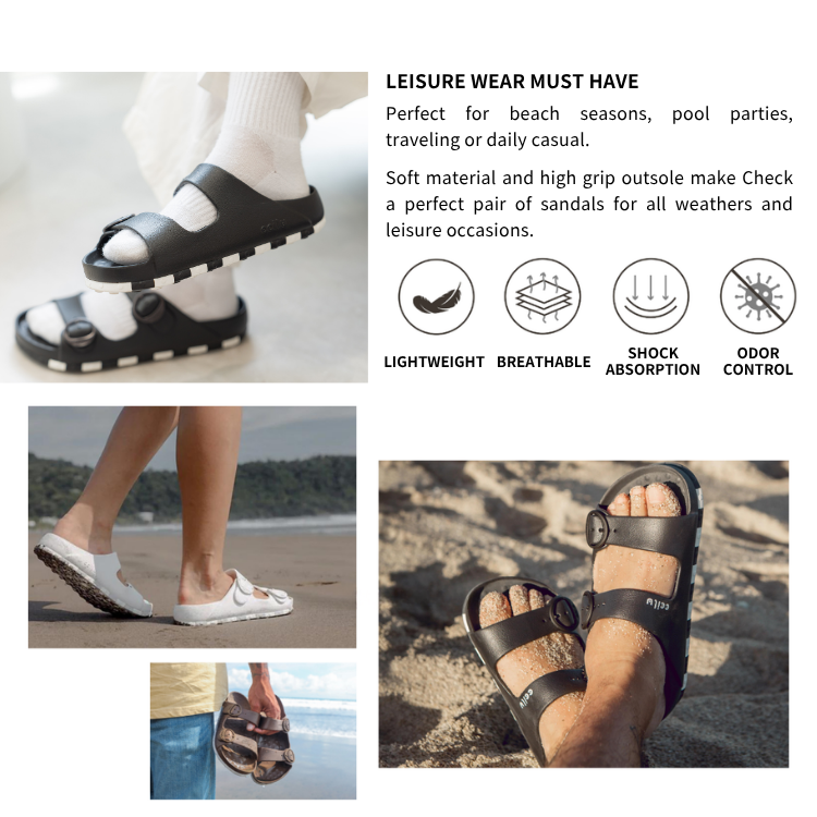 Jg10รองเท้าแตะชายหาดหัวเข็มขัดคู่สำหรับใส่กลางแจ้งสายรัดปรับได้ EVA กันลื่นเป็นมิตรกับสิ่งแวดล้อมมาตรฐานสูง