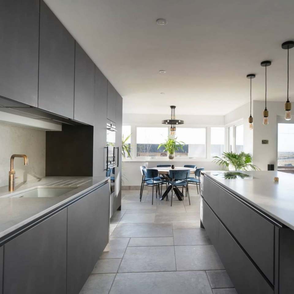 ตู้เชคเกอร์สไตล์โมเดิร์นดีไซน์สีเทามาตรฐานสูงตู้แบบออกแบบได้ตามต้องการหรูหราเฟอร์นิเจอร์ห้องครัว