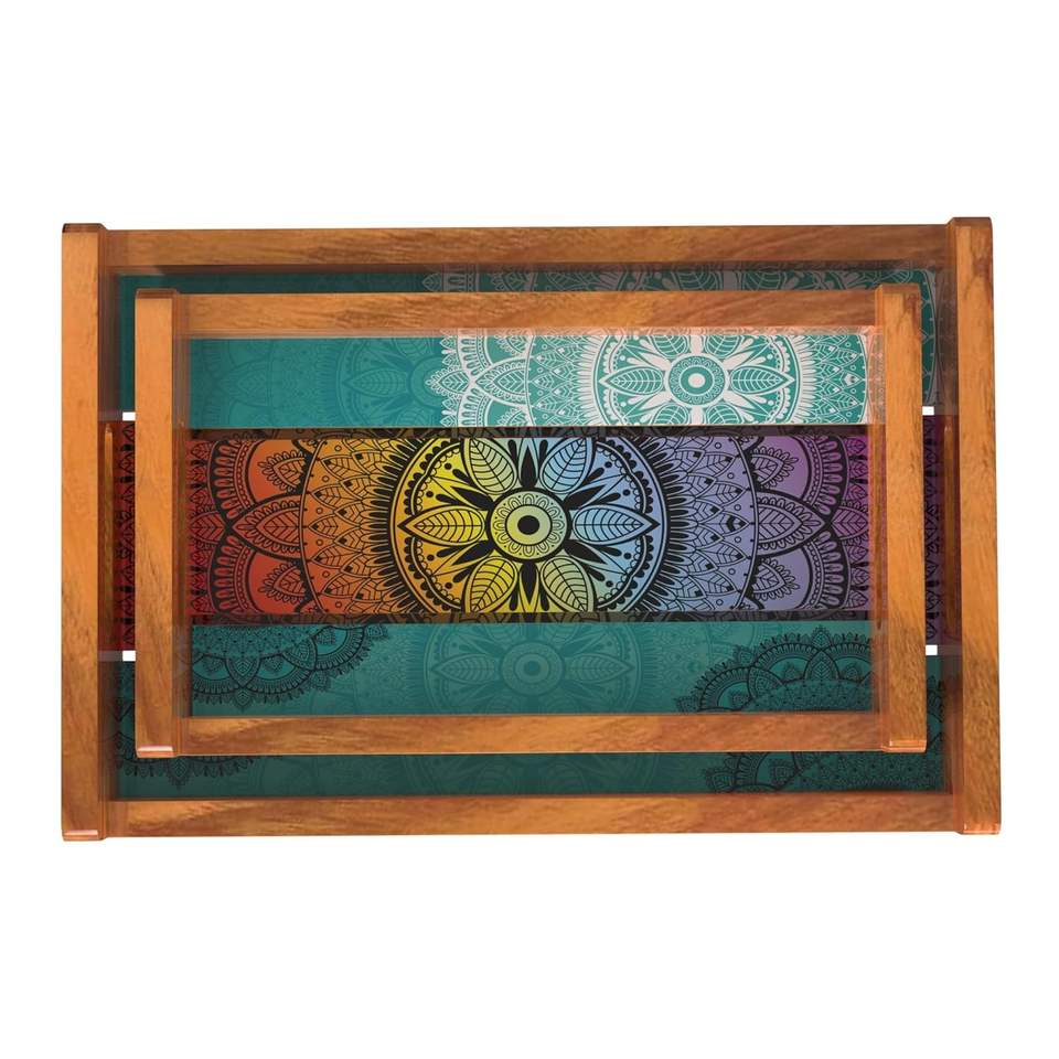 ชุดถาดเสิร์ฟไม้พิมพ์ลายคุณภาพสูง 2 ชิ้น ถาดไม้ทำมือพร้อมหูจับ สำหรับเสิร์ฟของตกแต่ง ของหวาน