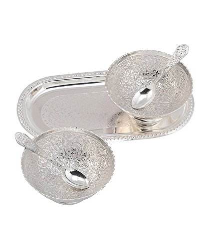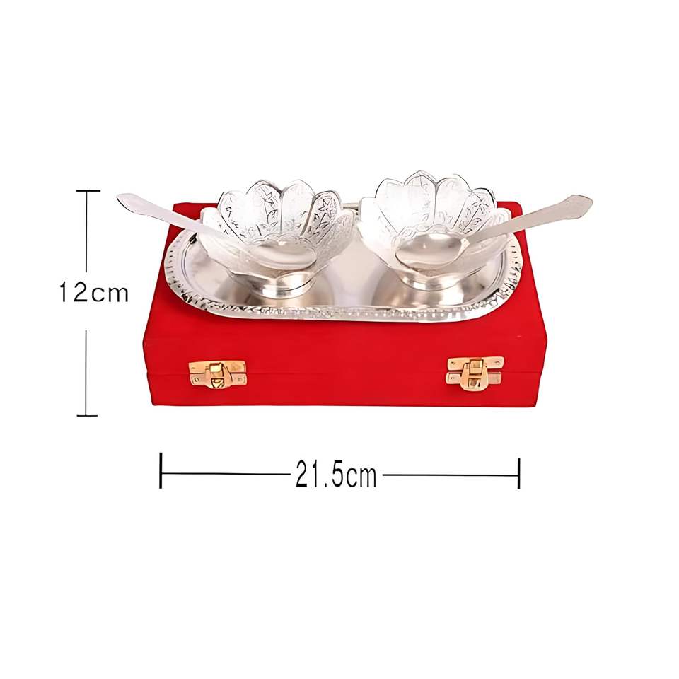 ชุดชาม2ใบกลมลายดอกไม้พร้อมถาดและช้อนสีเงินของขวัญคืนขององค์กรสำหรับวันครบรอบ
