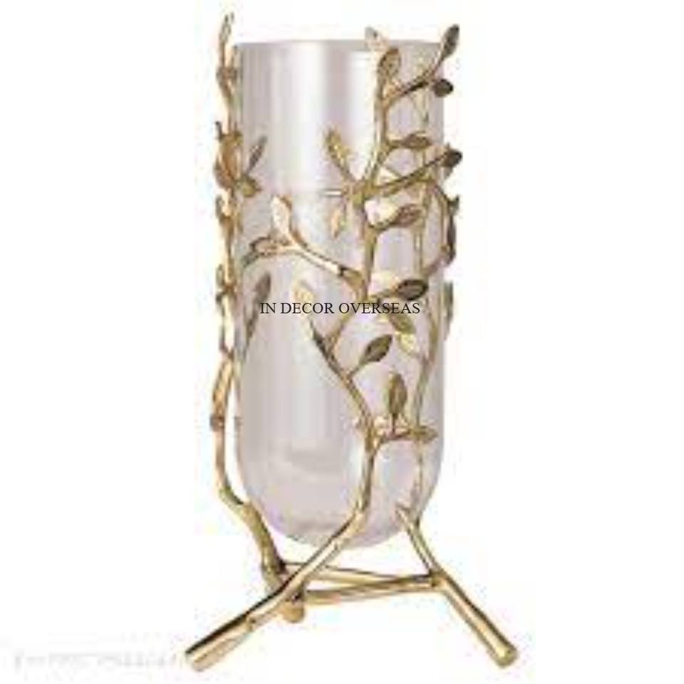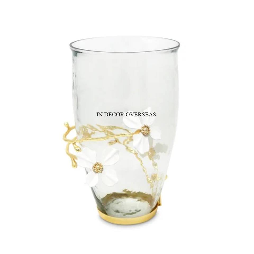 แจกันดอกไม้ทำจากแก้วสีเขียวที่ดูสง่างามมีสไตล์ดีไซน์เนอร์สำหรับตกแต่งโต๊ะในโรงแรมและบ้านจากอินเดีย