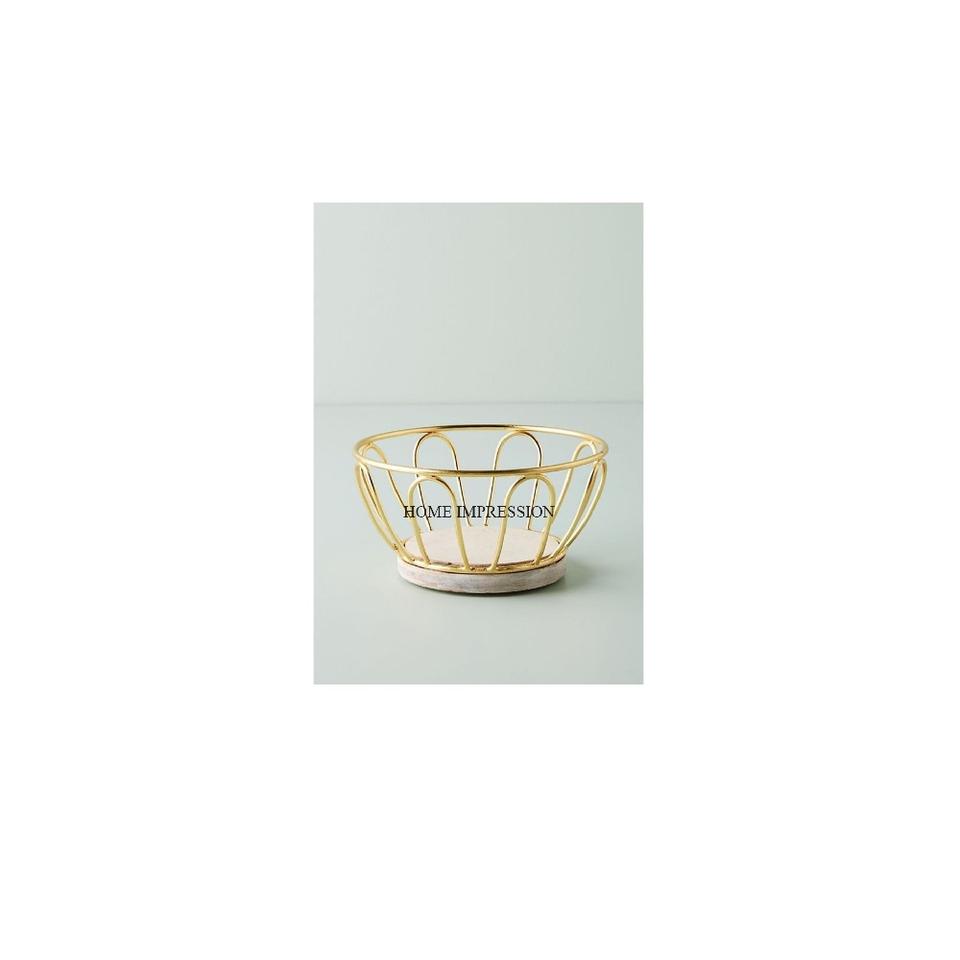 ตะกร้าโลหะชุบสีทองสำหรับงานหนักตะกร้าเสิร์ฟขนมปังและผลไม้วางกลางโต๊ะดูน่าสนใจ
