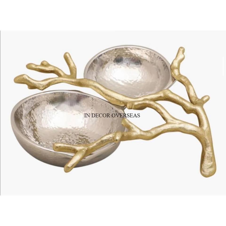ชามโลหะ2ช่องดีไซน์เนอร์เคลือบเงาทำจากเงินชุบทอง
