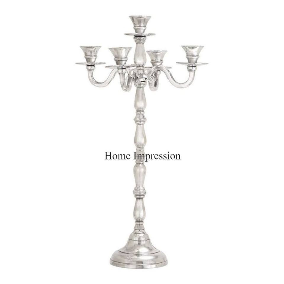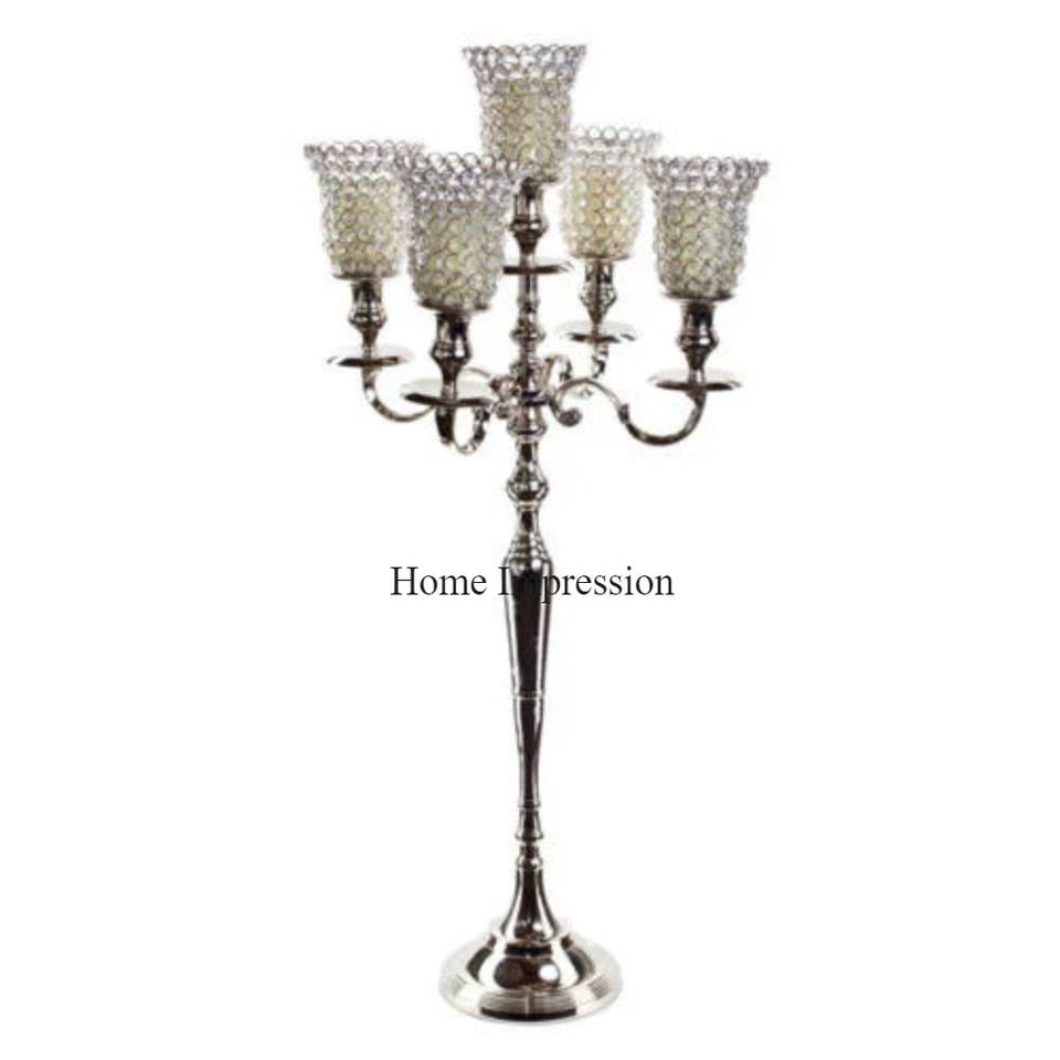 คริสตัลหล่ออลูมิเนียมสีเงินเงางามลูกปัด5แขนตกแต่งงานแต่งงานดูหรูหราเชิงเทียน