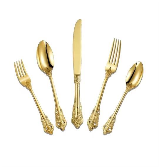 ชุดช้อนส้อมสแตนเลสคุณภาพสูง ดีไซน์หรูหรา โทนสีเมทัลลิกอบอุ่น เหมาะสำหรับงานเลี้ยง สินค้ามาใหม่ ราคาประหยัด