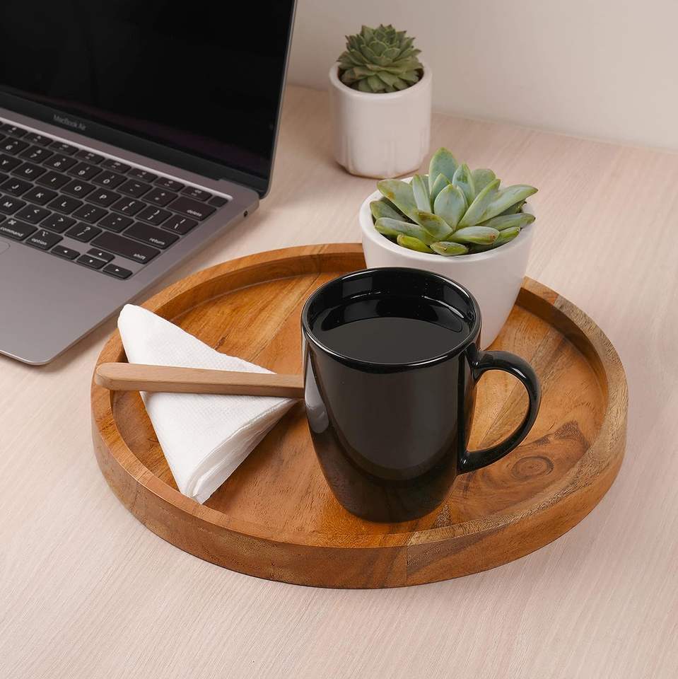 ถาดเสิร์ฟทำจากไม้มาตรฐานสูงถาดโชว์เครื่องดื่มชากาแฟทรงกลมถาดคุกกี้บราวนี่ตกแต่ง