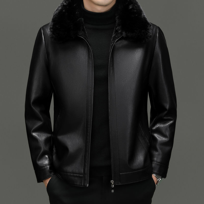 เสื้อโค้ทหนังแบรนด์ดังสำหรับผู้ชาย รุ่นใหม่สำหรับฤดูใบไม้ร่วงและฤดูหนาว หนาขึ้น อุ่นขึ้น พร้อมปกขนสัตว์ถอดได้ สไตล์ลำลองสำหรับธุรกิจ
