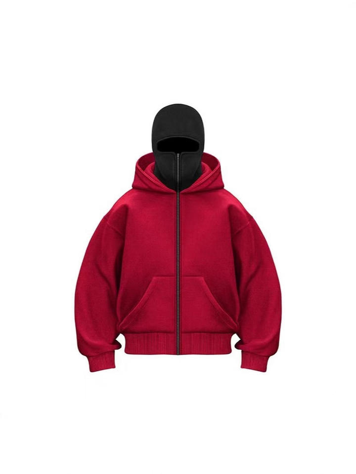 เสื้อฮู้ดแบบคลุมหน้าเต็มใบสไตล์นินจาสำหรับผู้ชาย แบบซิป ลายสีตัดกัน สำหรับกิจกรรมกลางแจ้ง