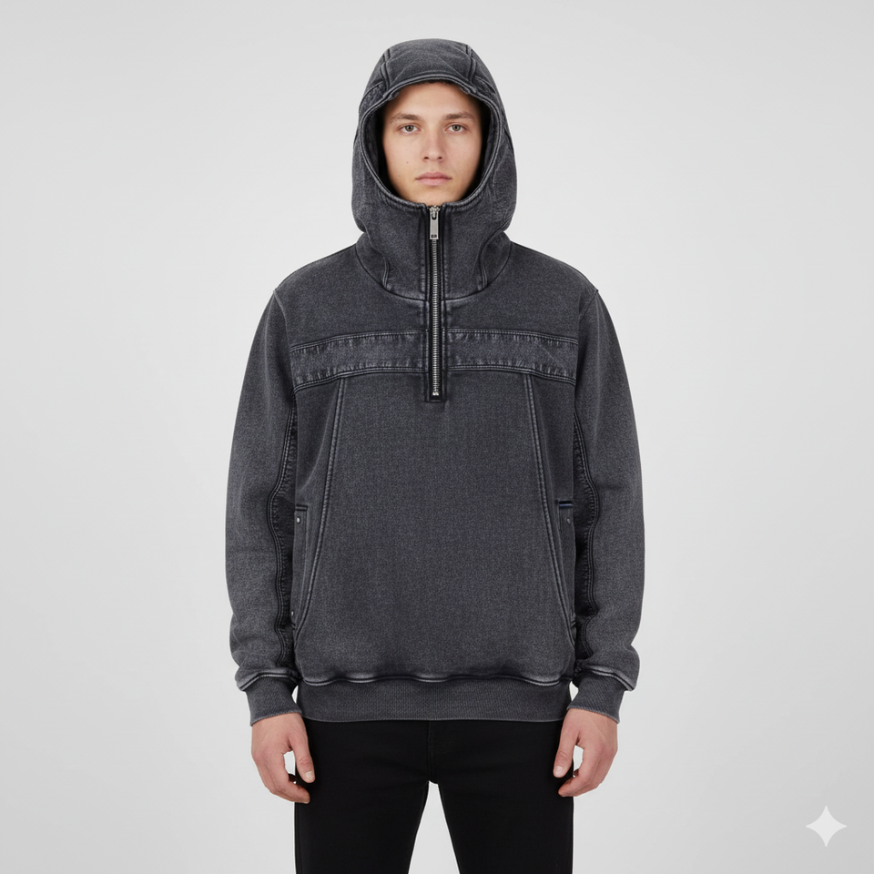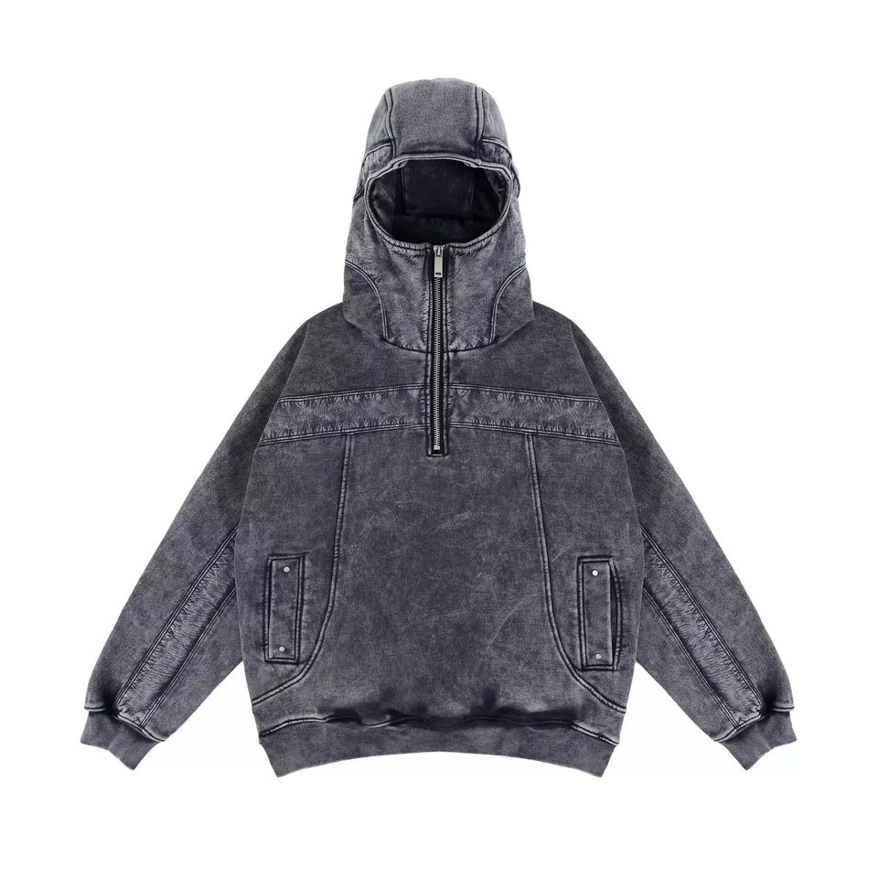 เสื้อฮู้ดบัลลาคลาวาแบบมีซิปสำหรับผู้ชาย สไตล์นินจา สำหรับกิจกรรมกลางแจ้ง ดีไซน์สีตัดกันแบบไฮสตรีท พร้อมหมวกสองชั้นแบบสั่งทำพิเศษ