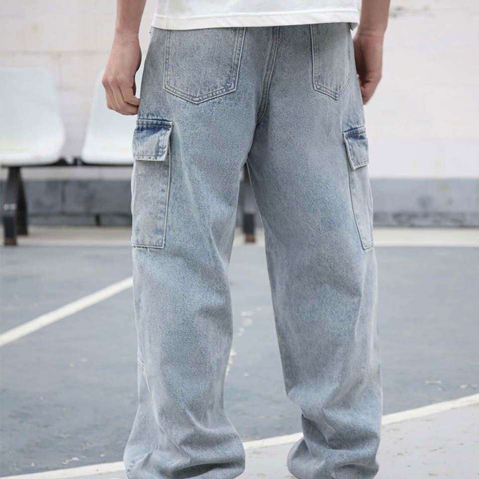 กางเกงยีนส์เดนิมทรงโอเวอร์ไซส์สไตล์วินเทจสำหรับผู้ชาย ผ้าฝ้าย 100% คอลเลคชั่นฤดูร้อน สตรีทแวร์ ขายส่งจาก High Street Custom