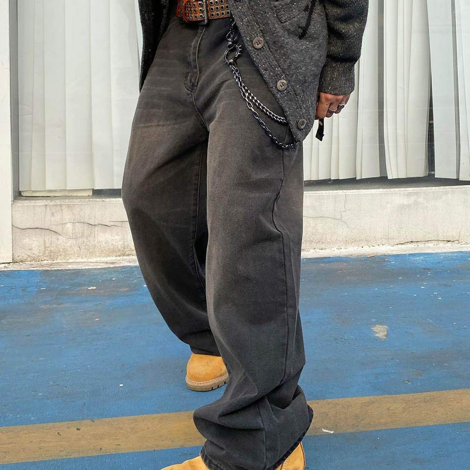 กางเกงยีนส์ผู้ชายทรงโอเวอร์ไซส์ สไตล์วินเทจ ทำสีซีดแบบสโตนวอช ระบายอากาศ แห้งเร็ว เนื้อผ้าหนา รับผลิตตามสั่ง ขายส่ง แฟชั่นไฮสตรีท
