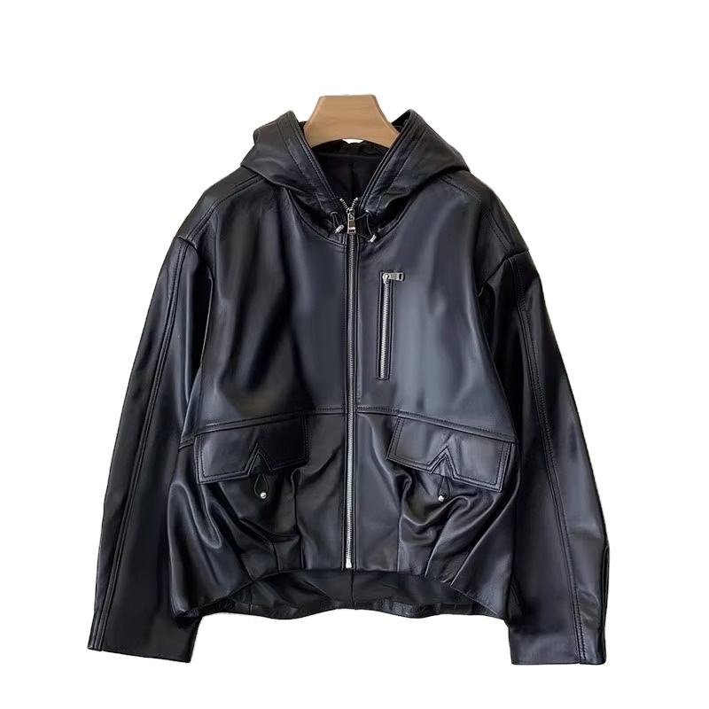 เสื้อแจ็คเก็ตแฟชั่นสตรีสไตล์ไฮสตรีท ผ้า PU แบบมีฮู้ด ทรงหลวม ปิดซิป หนังแกะเทียม สวมใส่สบาย เหมาะสำหรับฤดูหนาว รุ่นใหม่ ไซส์พลัส