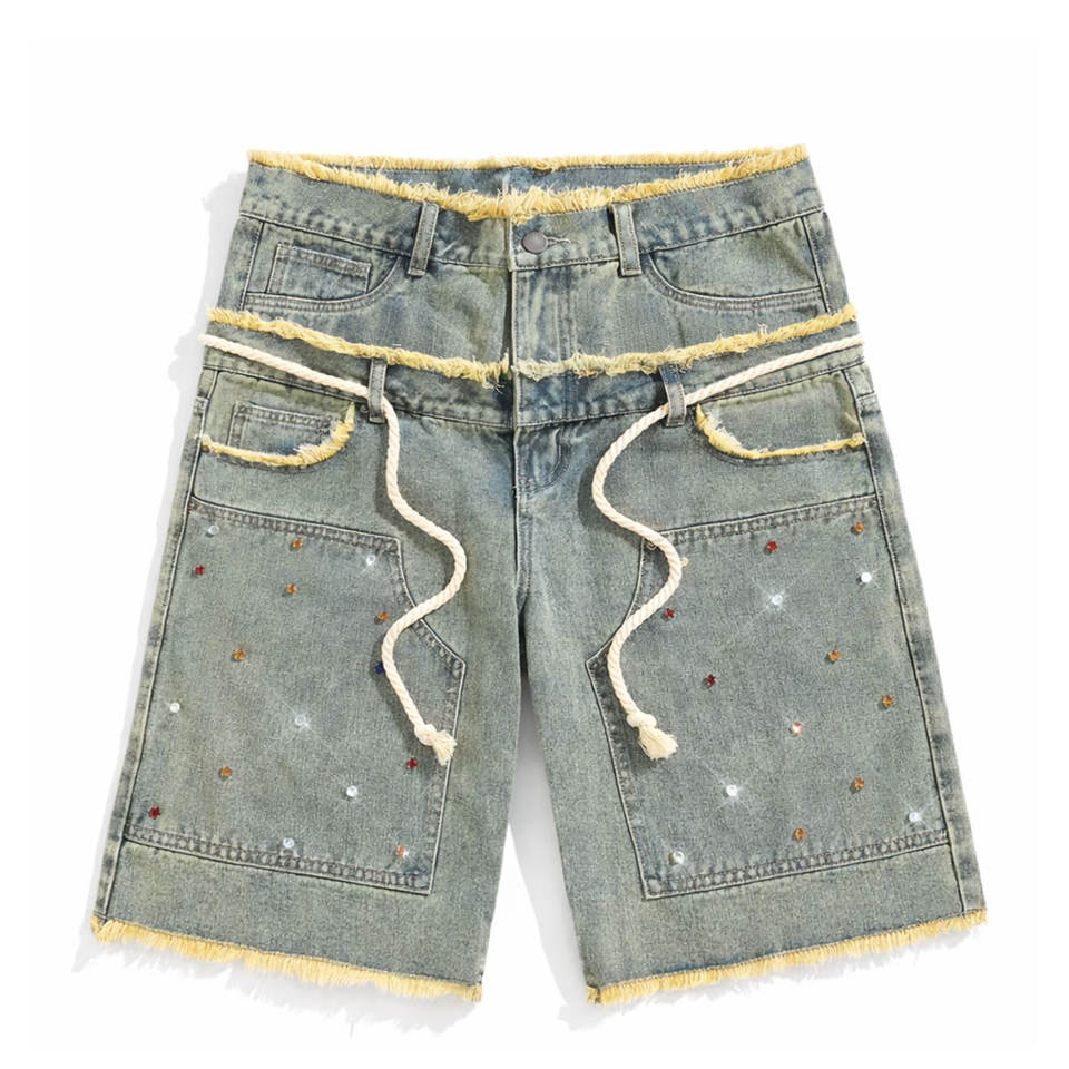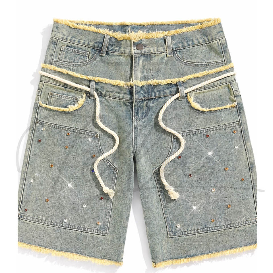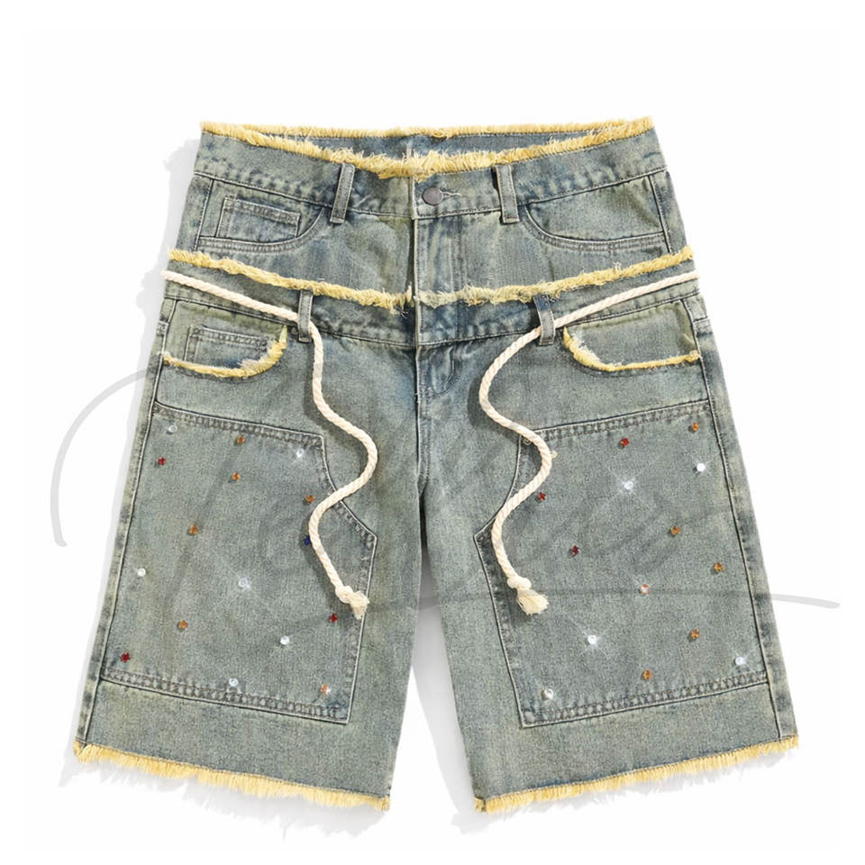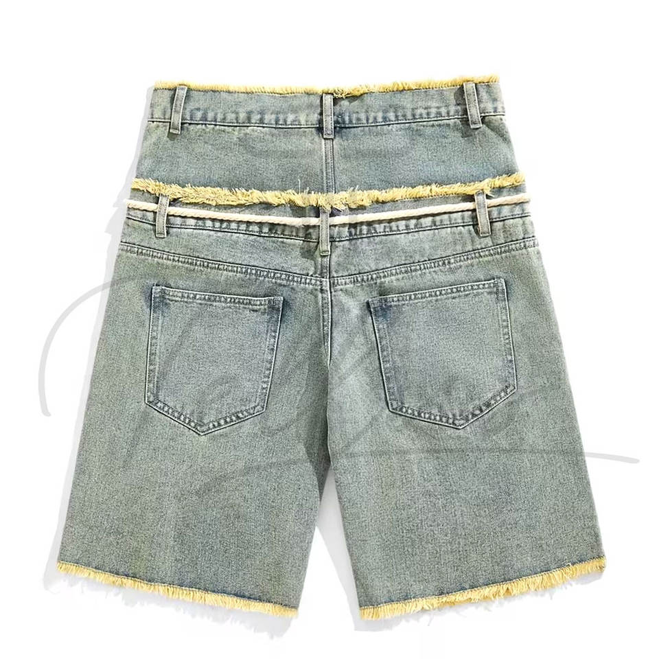 กางเกงยีนส์ขาสั้นผู้ชายแฟชั่นไฮสตรีท แห้งเร็ว ไซส์ใหญ่ ระบายอากาศได้ดี ผลิตจากผ้าเดนิม
