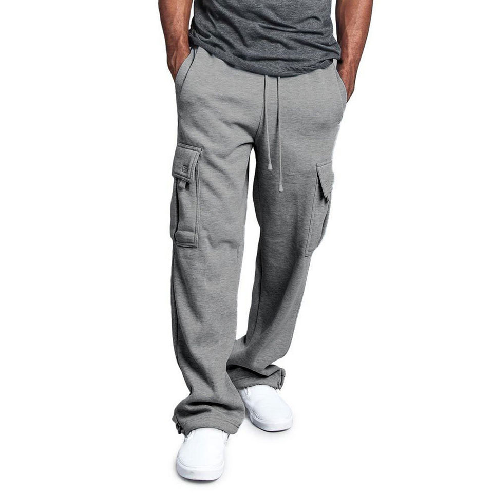 กางเกงคาร์โก้ลำลองผู้ชายสไตล์สตรีทแวร์ทรงตรงแบบจ็อกเกอร์ผ้าฟลีซมีกระเป๋าคาร์โก้ รับสกรีนโลโก้ ผ้าแคนวาส 100% ผ้าฝ้าย