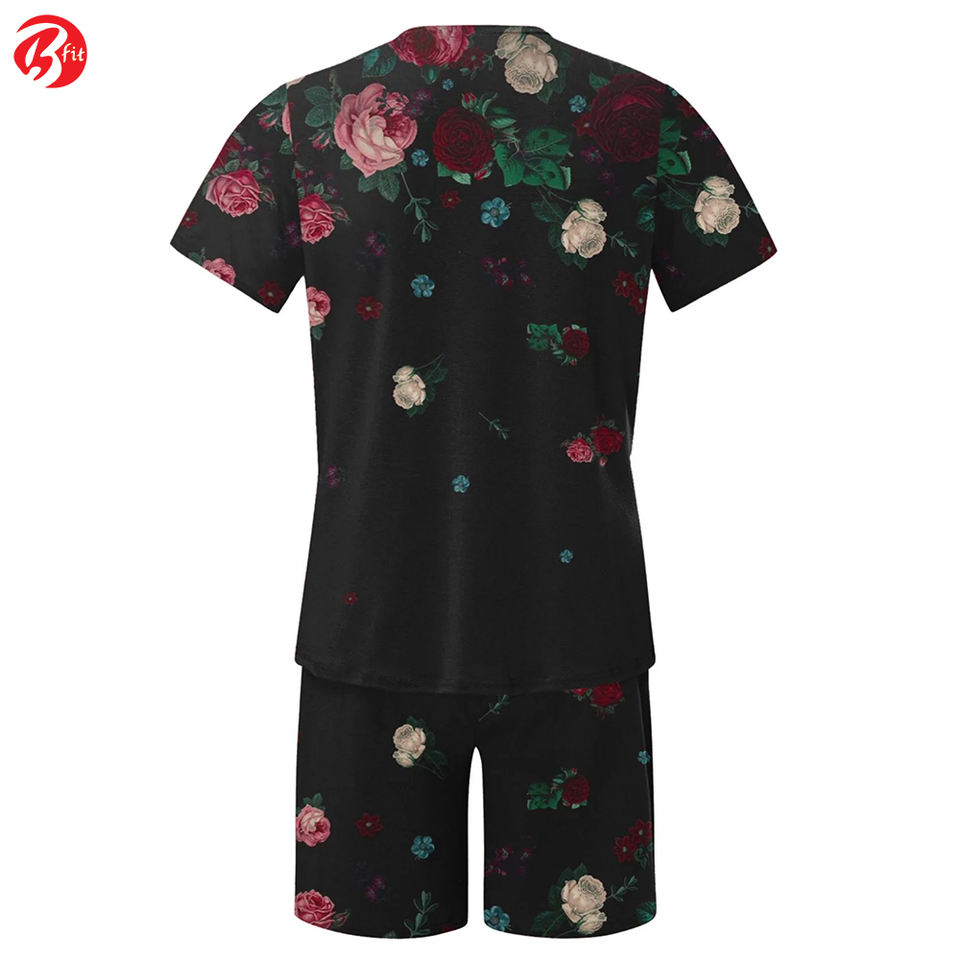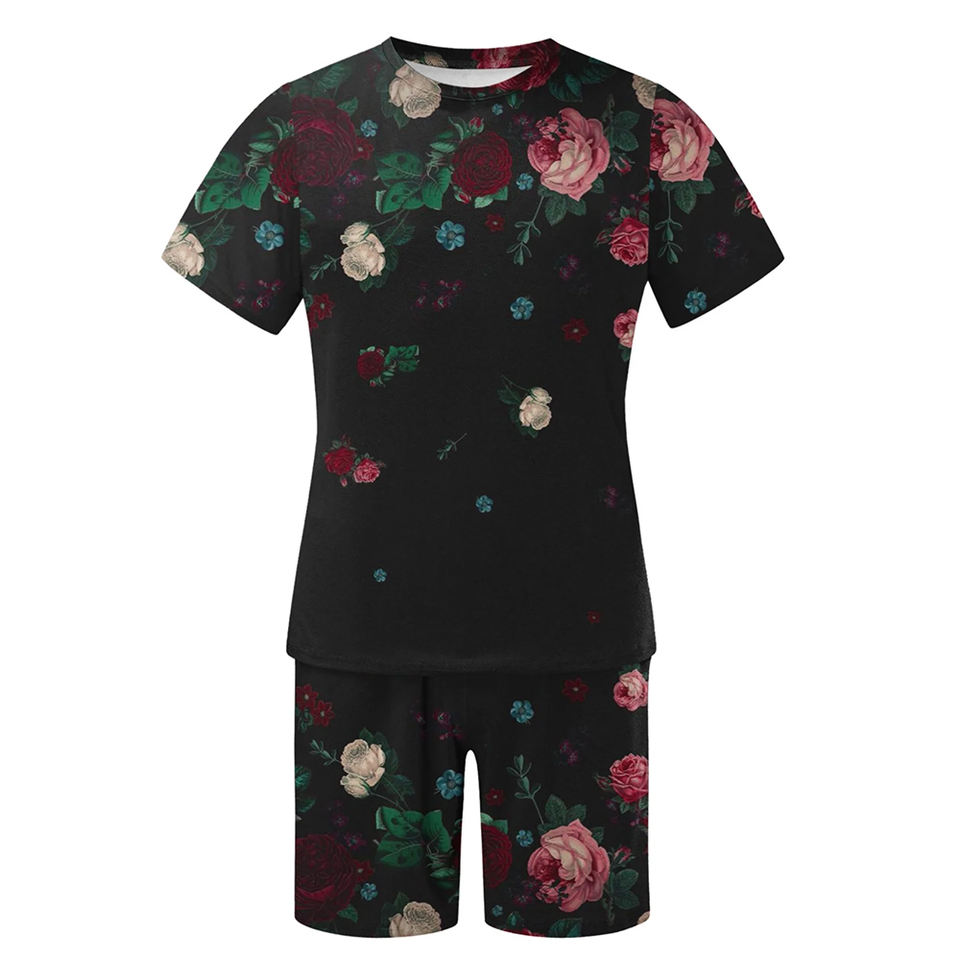 ชุดกางเกงขาสั้นพิมพ์ลายระบายอากาศแขนสั้นลำลองของผู้ชายแนวสตรีทสูงคอกลมดีไซน์ฤดูใบไม้ร่วงไซส์ใหญ่พิเศษสำหรับฤดูร้อน