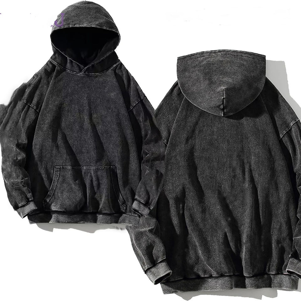 เสื้อฮู้ดดี้ผู้ชายไซส์ใหญ่สไตล์วินเทจ ผ้าฝ้าย ซิป ลายไล่สีแบบฟอกสี ลายนูน ปักลาย สำหรับฤดูหนาว