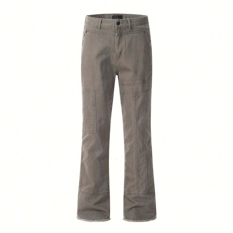 กางเกงยีนส์ทรงตรงผ่าสูงทรงสลิมฟิตทรงตรงมีรูขาดกางเกงทรงตรงแบบลำลอง