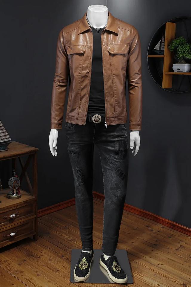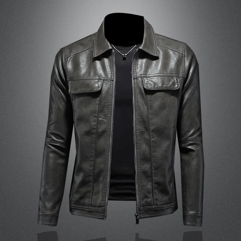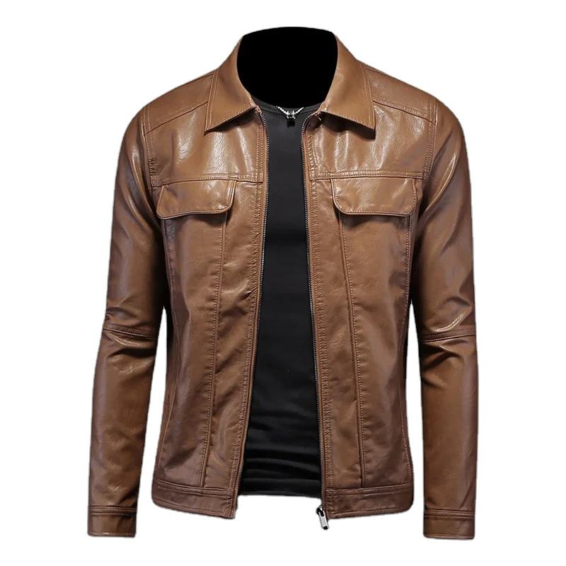 แจ็กเก็ตสไตล์ไฮสตรีทแจ็กเก็ตหนังสีน้ำตาลสำหรับผู้ชายเสื้อแจ็กเก็ตขี่มอเตอร์ไซค์แนวพังก์คอตั้งสำหรับวัยรุ่นผ้าแคนวาสสำหรับ Los hombres