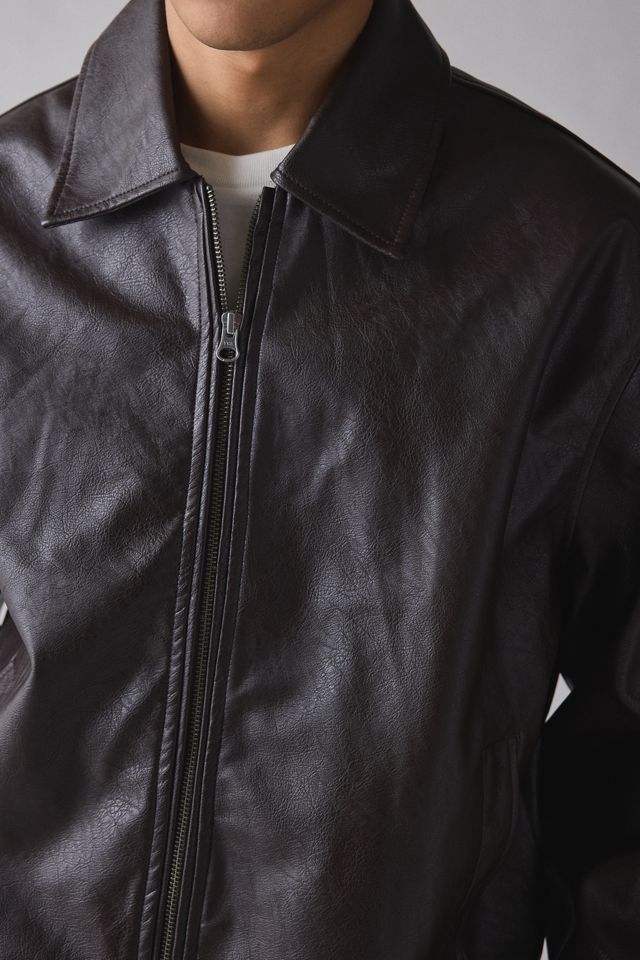 แจ็คเก็ตหนังผู้ชายสไตล์ไฮสตรีท ดีไซน์ล่าสุด พร้อมโลโก้ด้านหน้า ขายส่งออนไลน์ MOQ ต่ำ ย้อมสีพื้น