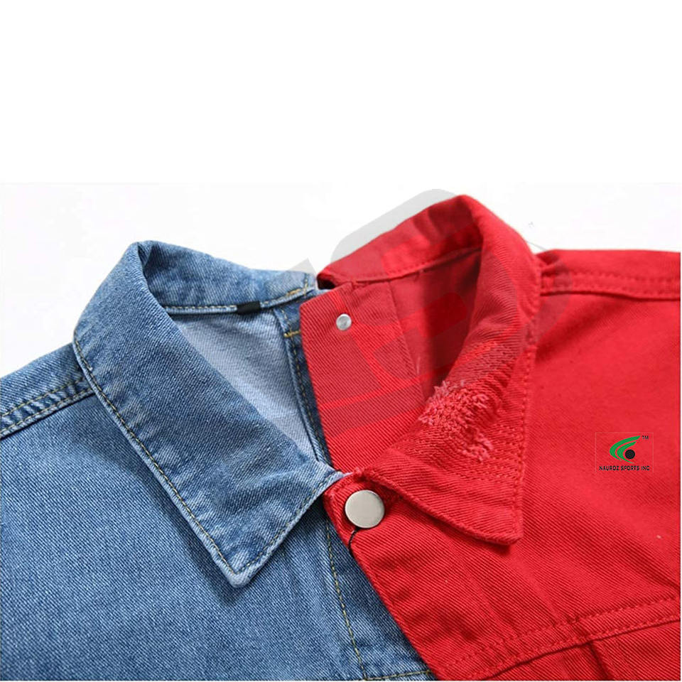 แจ็กเก็ตยีนส์สีทึบสไตล์ไฮสตรีทแจ็กเก็ตยีนส์แบบลำลองตามสั่งมีหลายขนาด