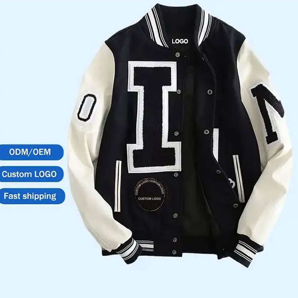 แจ็คเก็ตวาร์ซิตี้คุณภาพสูงแบบสั่งทำพิเศษสำหรับผู้ชาย แขนหนัง สไตล์เบสบอล วินเทจ แจ็คเก็ตเลตเตอร์แมน