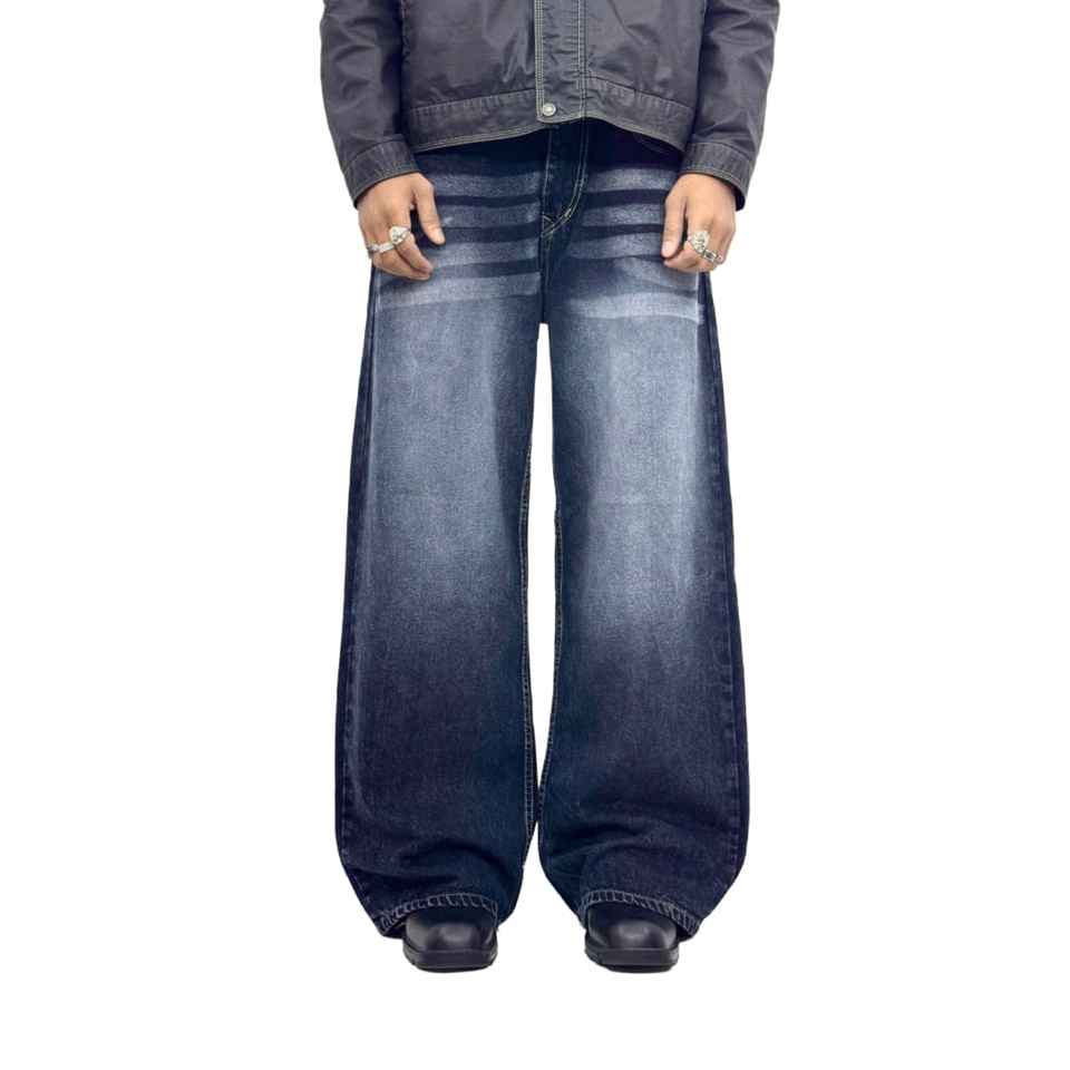 กางเกงผ้าเดนิมสีเข้มอินเทรนด์ไฮสตรีทแวร์แนวสตรีทแวร์แนวสตรีทแวร์แนววินเทจแฟชันสำหรับผู้ชาย