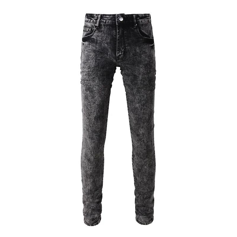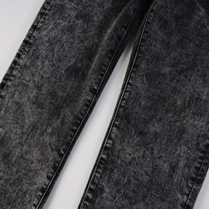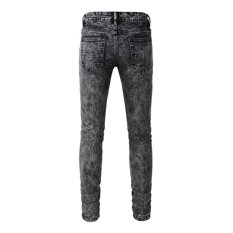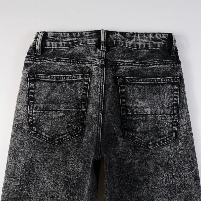 กางเกงยีนส์สีดำขาดทรงสลิมฟิตสำหรับผู้ชายกางเกงลำลองเอวปานกลางมีไซส์