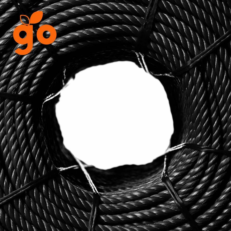 High Strength 4 Strand Braided Polypropylene Rope Black Color with UV Protection Roll 100 m